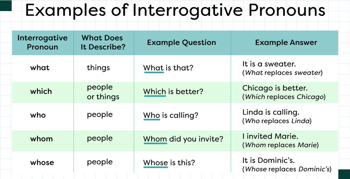 ضمیر پرسشی، برای سوال پرسیدن استفاده می شود. البته در بین این ضمایر، who می تواند هم به عنوان فاعل و هم به عنوان مفعول استفاده شود.